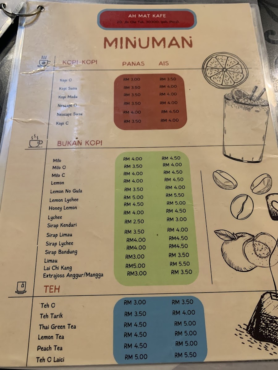 Ah Mat Kafe Ipoh Menu